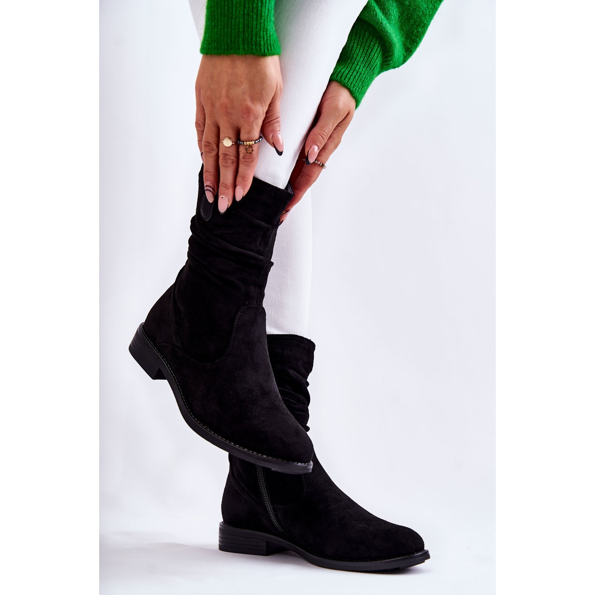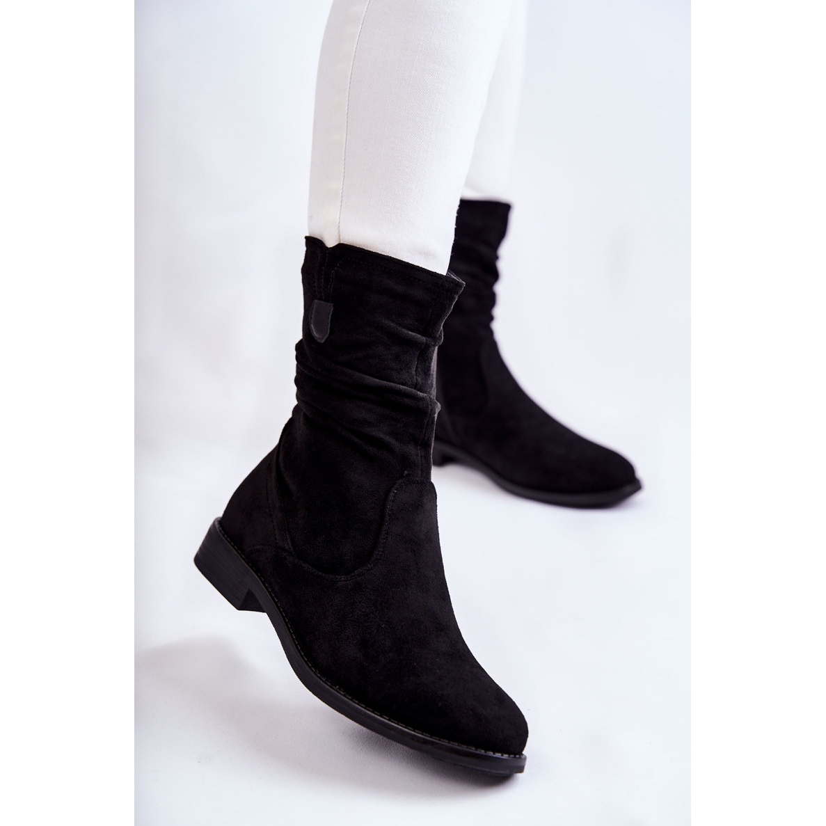 - Modell: Geknitterte Wildlederstiefel für Damen Schwarz Joanne