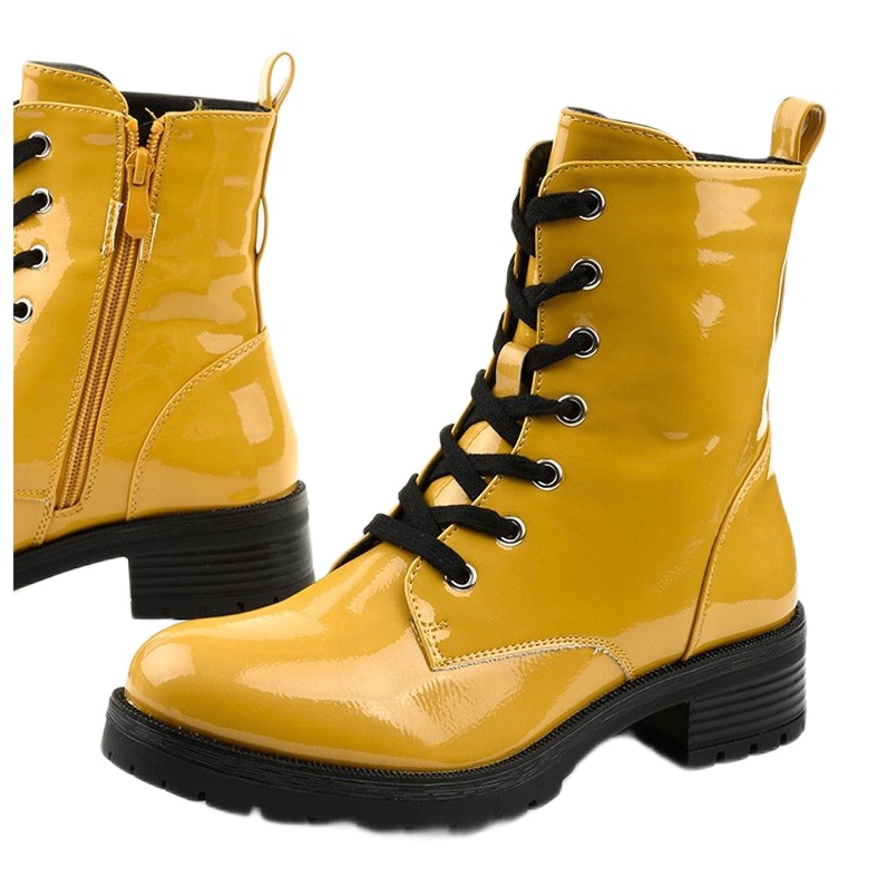 Warten Sie nicht und ergänzen Sie Ihre Sammlung um diese einzigartigen gelb lackierten Bovver-Stiefel, die Ihren individuellen Stil mit Sicherheit unterstreichen werden!
