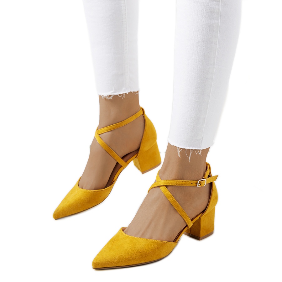 Entdecken Sie Eleganz und Komfort mit den gelben Terra-Pumps. Diese einzigartigen Schuhe vereinen Schlichtheit mit einem schönen Finish, das begeistert. Der niedrige, 5 cm hohe Absatz garantiert Komfort und Stabilität, sodass Sie den ganzen Tag Freude daran haben.