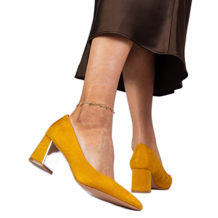 Elegante gelbe Pumpen auf einem dekorierten Posten sind ein großartiges Angebot für jede selbstbewusste Frau. Das LL-179P-Modell unterscheidet sich nicht nur durch stilvolles Design, sondern auch mit der höchsten Qualität der Verarbeitung, was sie zu einem einzigartigen Element der Garderobe macht.