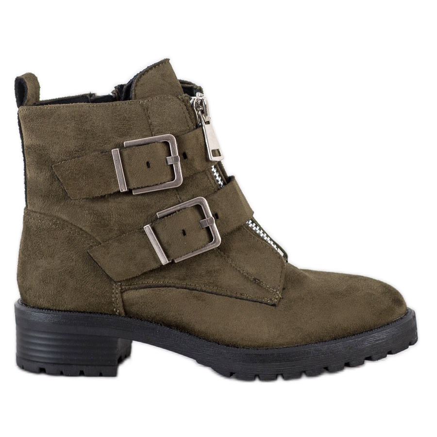 Entdecken Sie Originalität und Komfort im einzigartigen khakigrünen Worker von Corina. Diese einzigartigen Schuhe sind die perfekte Lösung für Frauen, die ihrem Alltagsstil einen militärischen Akzent verleihen möchten. Sie zeichnen sich nicht nur durch ein einzigartiges Design aus, sondern auch durch Funktionalität, dank eines mittig platzierten Reißverschlusses und dekorativer Schnallen, die Aufmerksamkeit erregen.