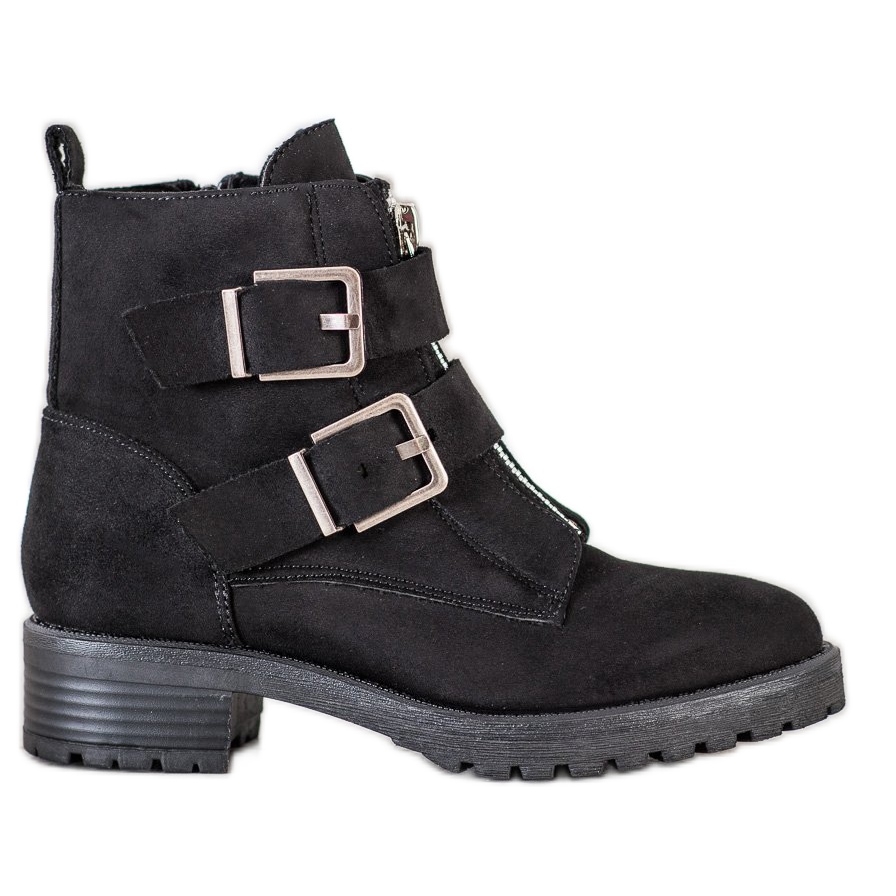 Das Obermaterial besteht aus hochwertigem ökologischem Wildleder, was ihnen nicht nur einen modischen Look, sondern auch Haltbarkeit verleiht. Im Inneren finden Sie einen Textileinsatz, der den ganzen Tag über für Tragekomfort sorgt. Dekorative Schnallen und ein Reißverschluss verleihen den Taschen einen einzigartigen Stil und durch ihre klassische schwarze Farbe passen sie zu vielen verschiedenen Outfits.