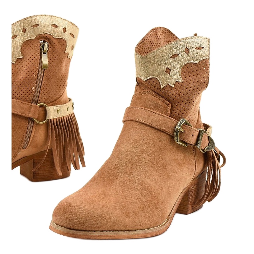 Diese aus hochwertigem ökologischem Wildleder gefertigten Stiefel zeichnen sich durch eine sorgfältige Verarbeitung aus, die ihnen einen einzigartigen Charakter verleiht. Ein zusätzlicher Vorteil sind auffällige Fransen, die jedem Schritt Leichtigkeit und Dynamik verleihen. Eine stilvolle runde Spitze und ein bequemer 5-cm-Blockabsatz sorgen für ein angenehmes Tragegefühl den ganzen Tag.