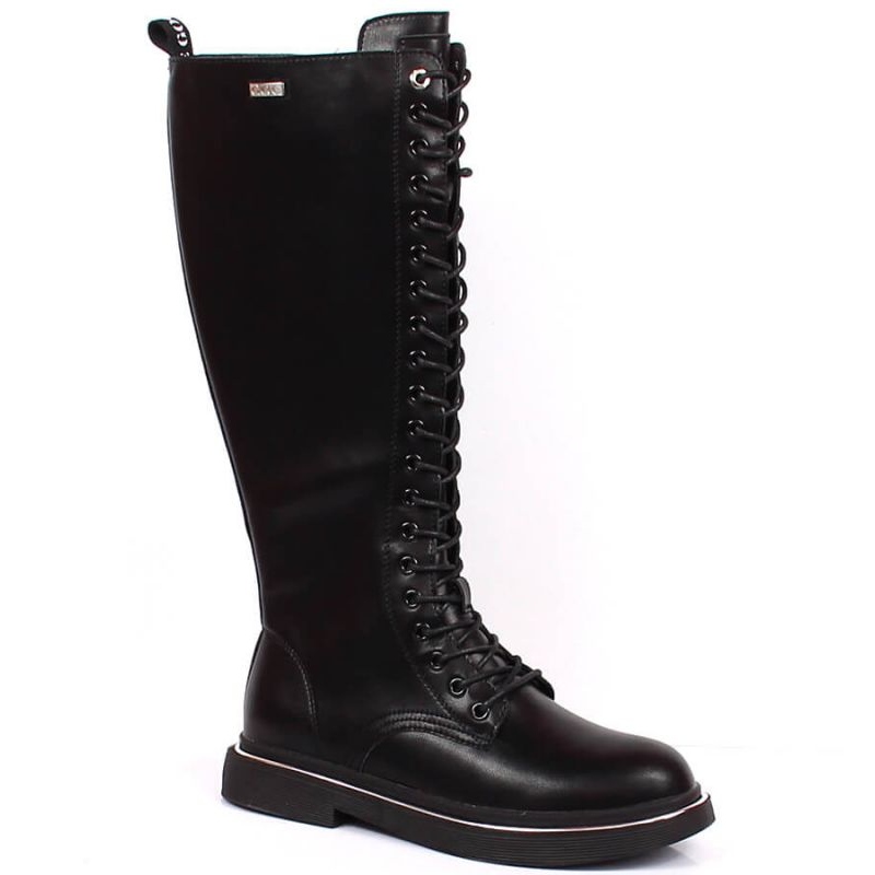 Mit einer Länge oberhalb des Knies und einer runden Spitze schützt dieses Modell nicht nur vor Kälte, sondern verleiht jedem Styling auch eine schicke Note. Das mit Fell gefütterte Futter sorgt für thermischen Komfort und macht sie zu einer idealen Lösung für frostige Tage. Die Stiefel werden mit einem Reißverschluss und Schnürsenkeln befestigt, was ein einfaches Anziehen und Anpassen der Passform an die Wade ermöglicht.