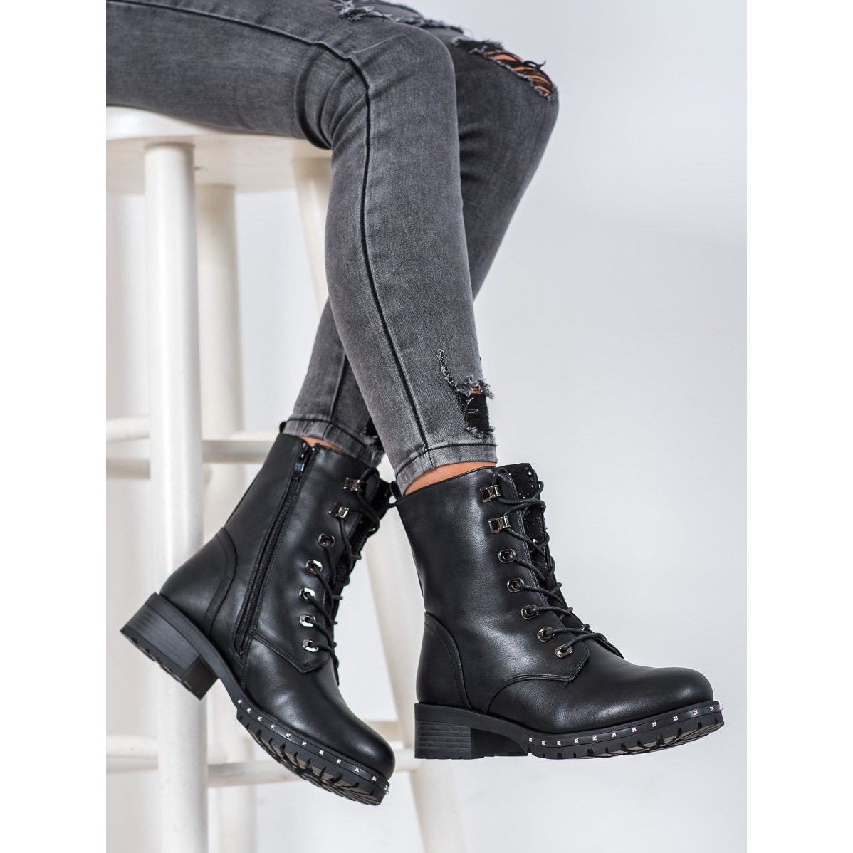 Entdecken Sie einzigartige Schnür-Worker mit Kristallen von J. Star, die klassischen Stil mit einem Hauch von Eleganz perfekt verbinden. Diese schwarzen Stiefeletten sind eine perfekte Ergänzung für die Garderobe jeder Frau und sorgen nicht nur für einen modischen Look, sondern auch für Komfort im täglichen Gebrauch.