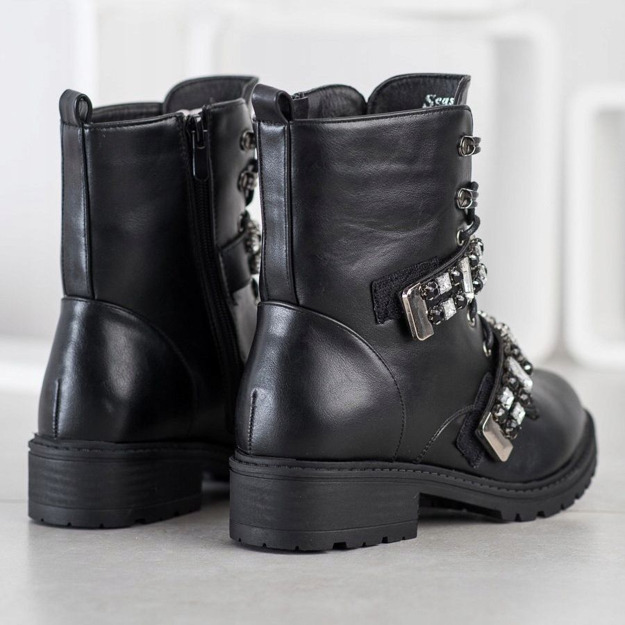 Entdecken Sie Komfort und Stil in einem dank der Seastar Lace-up Workers mit Kristallen in Schwarz. Diese einzigartigen Damenschuhe werden mit ihrer einzigartigen Ästhetik, die lässigen und rockigen Stil vereint und sich perfekt für den täglichen Gebrauch eignet, sicherlich die Aufmerksamkeit auf sich ziehen.
