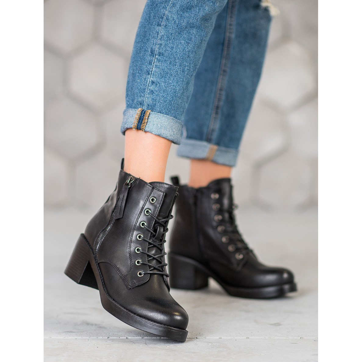 SHELOVET Schnür-Stiefeletten mit hohem Absatz in Schwarz – elegante und bequeme Ergänzung zu Ihrer Wintergarderobe