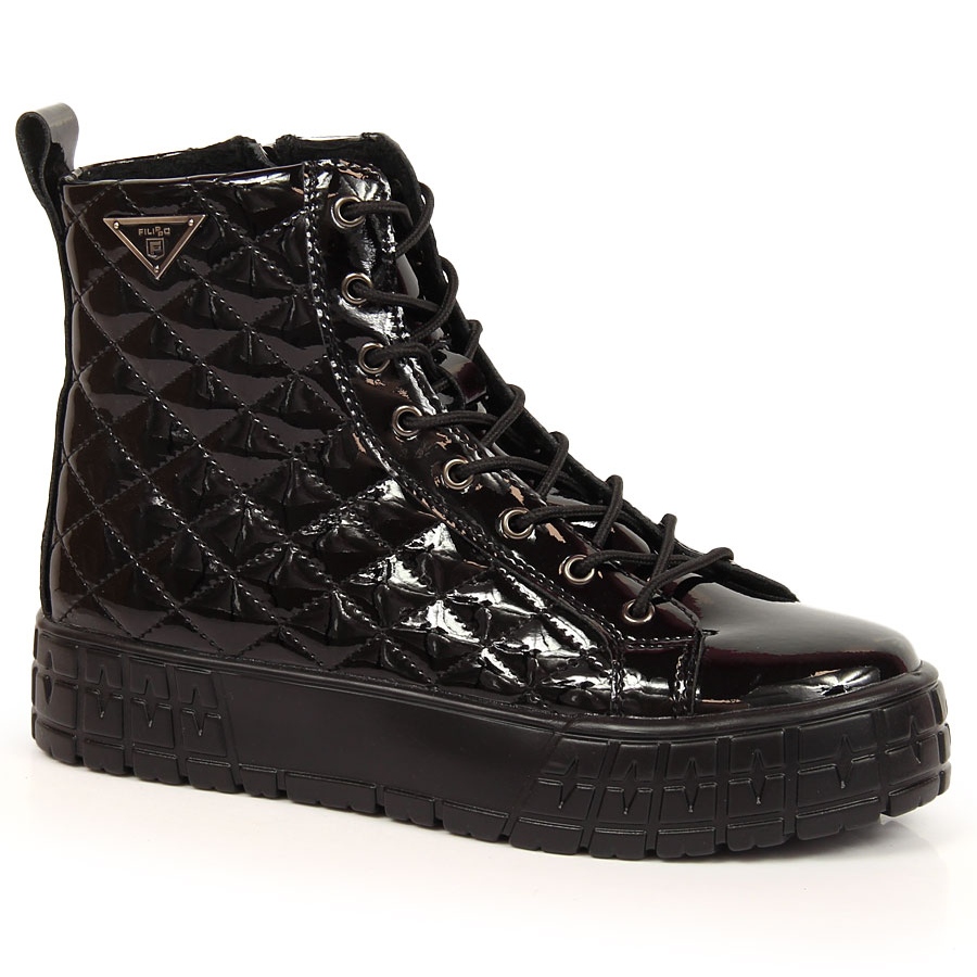 Elegante, schwarze Filippo Paw369 -Stiefel kombinieren modisches, gestepptes Design mit praktischer Erwärmung - perfekt für Herbst und Winter. Aus natürlicher Leder, ausgekleidet mit weichem Fell im Inneren (sowohl Auskleidung als auch Einsatz), sorgen Sie bei langen Spaziergängen in der Stadt Wärme und Komfort. Mit dem geschnürten Verschluss können sie den Fuß anpassen, und die feste Plattform ca. 4 cm fügt Stabilität hinzu und schlank die Abbildung subtil optisch. Die Stiefel greifen nach dem Knöchel (die oberen etwa 12 cm) - der lässige Schnitt wird in alltäglichen Stilisierungen funktionieren, aber auch für ausdrucksstärkeres, urbaneres Aussehen.