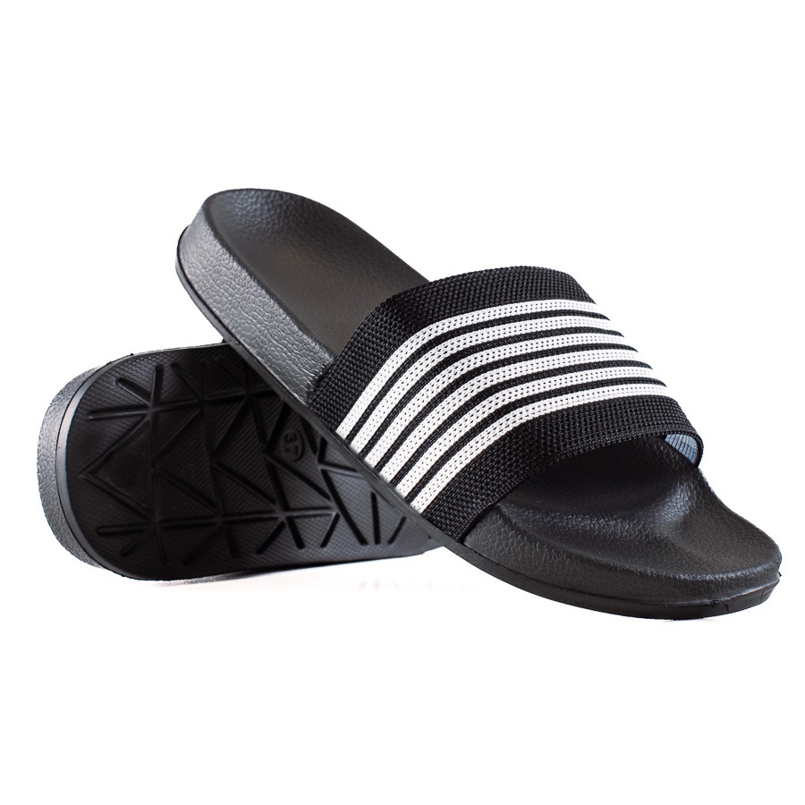 Details: SUPER COOL Gestreifte Hausschuhe schwarz