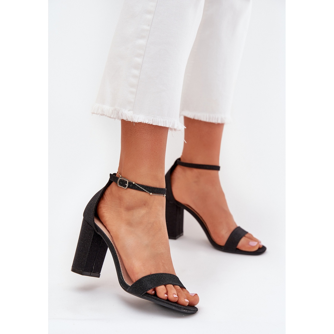 Die Fersenhöhe beträgt 9 cm, wodurch die Füße effektiv aussehen, und gleichzeitig bleiben die Sandalen dank der Ferse in Form eines Pfostens stabil. Mit Liebe zum Detail haben sie einen Ledereinsatz, der den Komfort des Tragens erhöht. Die äußere Schicht bestand aus haltbarem Kunststoff, und die einzige aus synthetische Material in Schwarze perfekt zu den restlichen Schuhen passt.