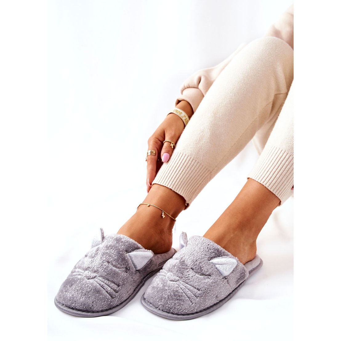 PE1 PE1 Glänzende Kätzchenhausschuhe mit grauen Kaisy-Ohren