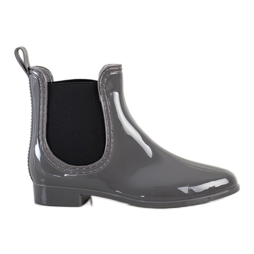Elegant, praktisch und 100% wasserdicht - kurze Galoschen in einer glänzenden grauen Farbe perfekt für regnerische, wolkige Tage. Die rutschte Struktur mit flexiblen schwarzen Keilen an den Seiten sorgt für eine schnelle Einführung und eine bequeme Passform. Die klassische, abgerundete Nase und Rundgummi -Sole mit einem universellen Modell für alltägliche Stilisierungen bilden ein universelles Modell.