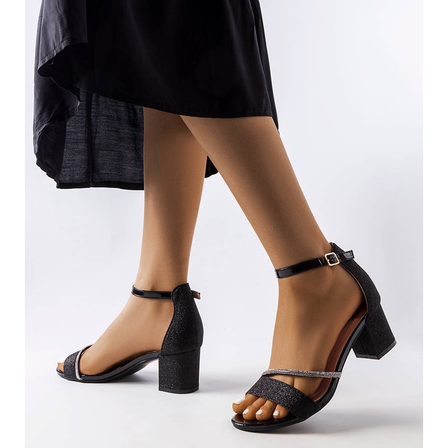 Die Sandalen zeichnen sich durch einen klassischen Schnitt mit einem dezenten Akzent in Form von Zirkonen aus, die das Schuhwerk zu einem Blickfang machen. Durch die dominierende schwarze Farbe passen die Sandalen zu verschiedenen Outfits und die silbernen Details verleihen ihnen einen einzigartigen Charme.