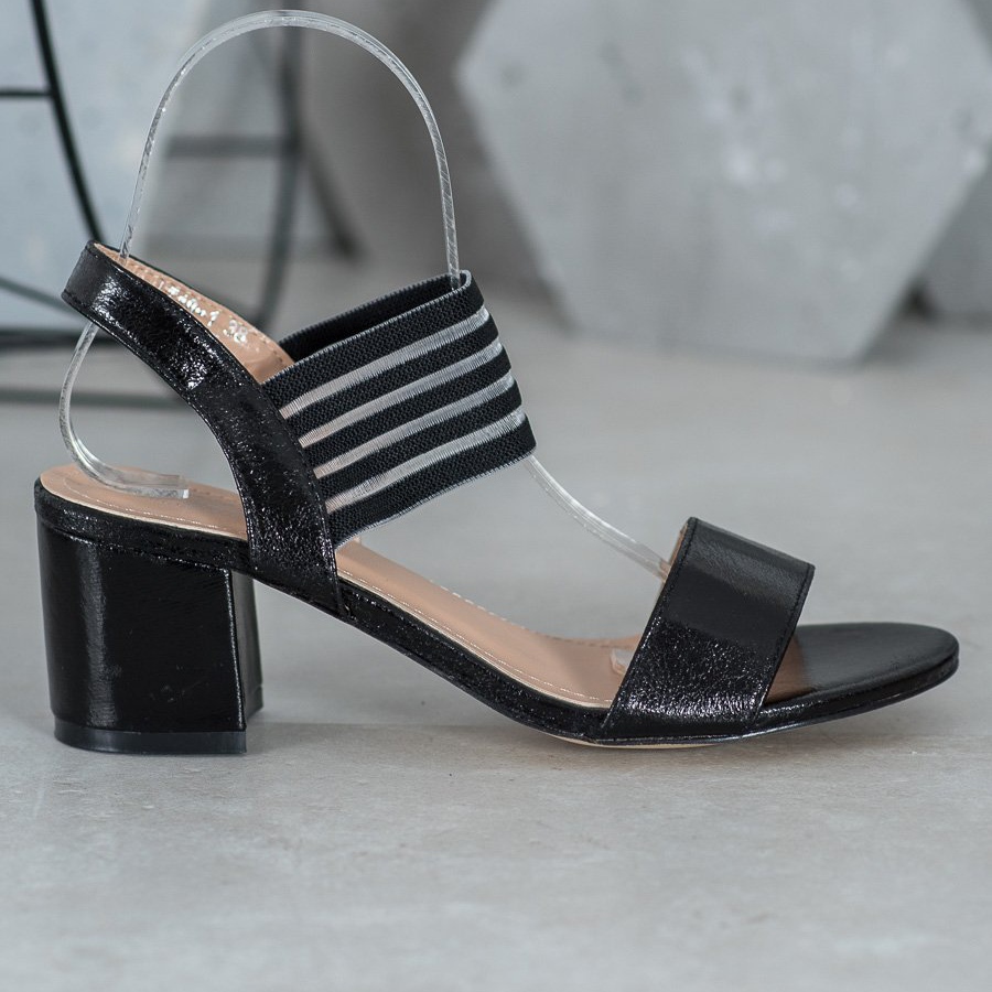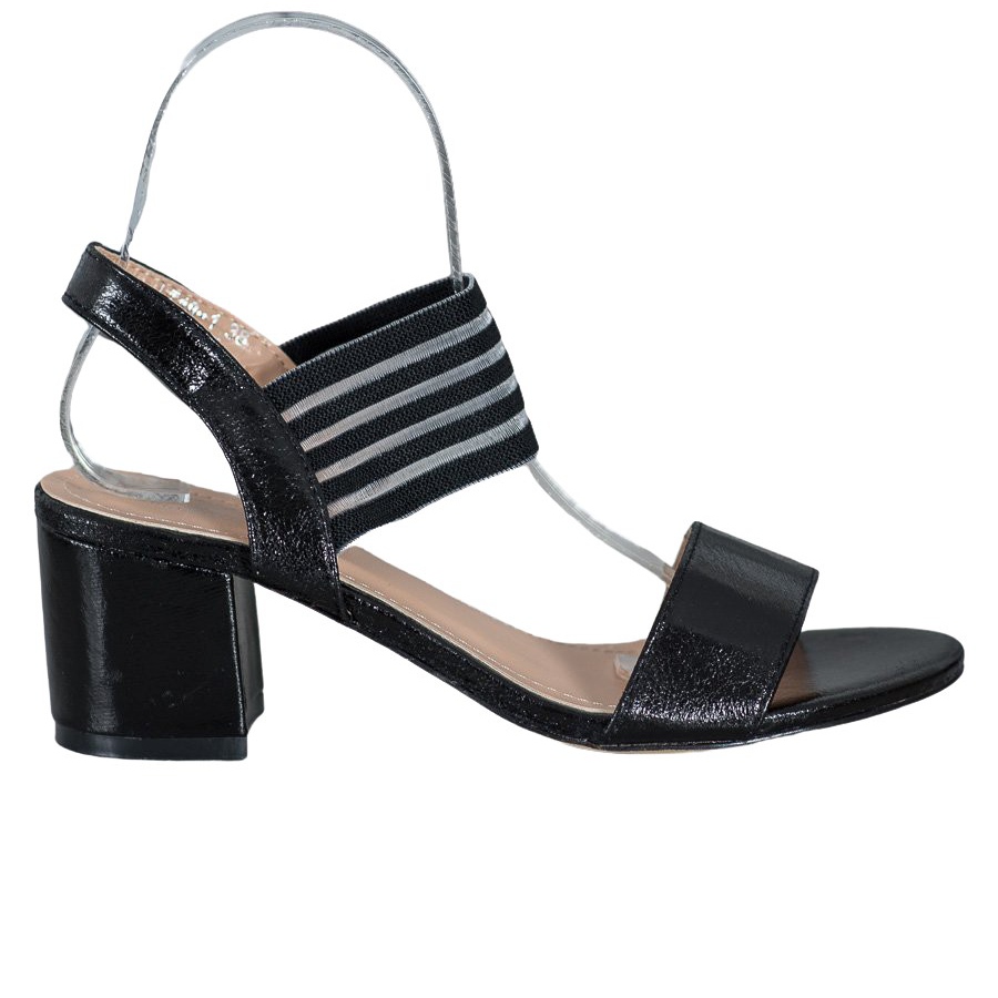 Sie präsentieren ein minimalistisches Design mit offenem Absatz und modernem 6,5-Zentimeter-Blockabsatz. Dadurch sehen sie nicht nur beeindruckend aus, sondern sorgen auch für Tragekomfort. Die klassische schwarze Farbe macht die Sandalen perfekt für viele Stilrichtungen, sowohl lässig als auch elegant.
