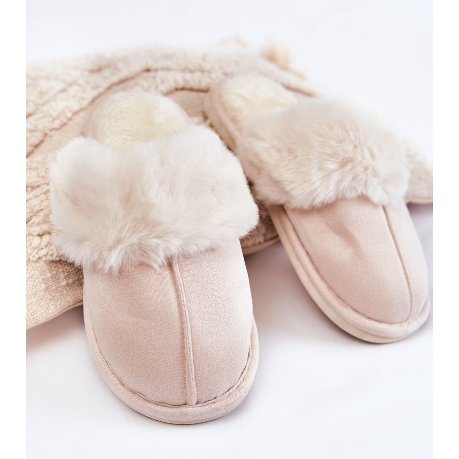BM BM Glatte Damenhausschuhe mit Pelz Hellbeige Morisea