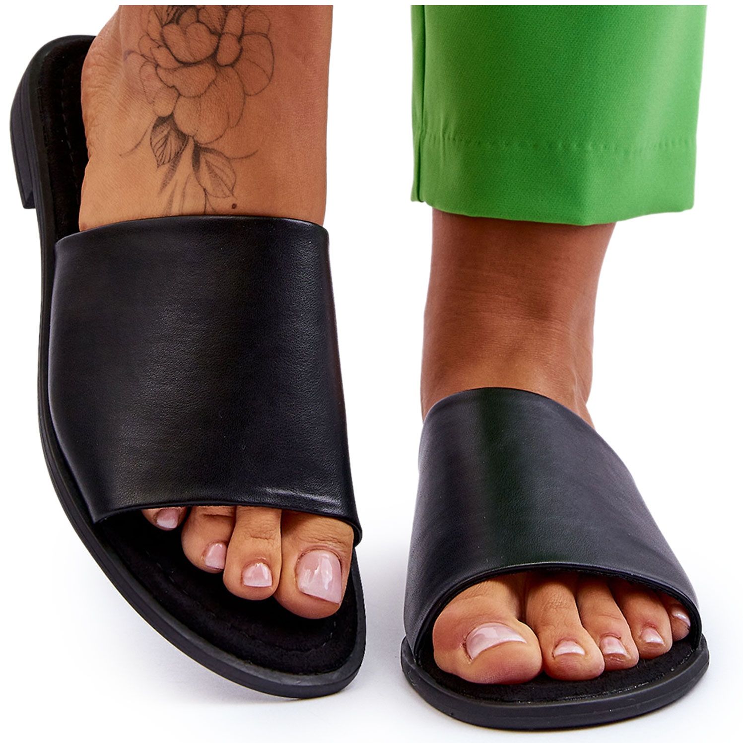 Details: Glatte Lederpantoffeln für Damen Schwarz Cerise