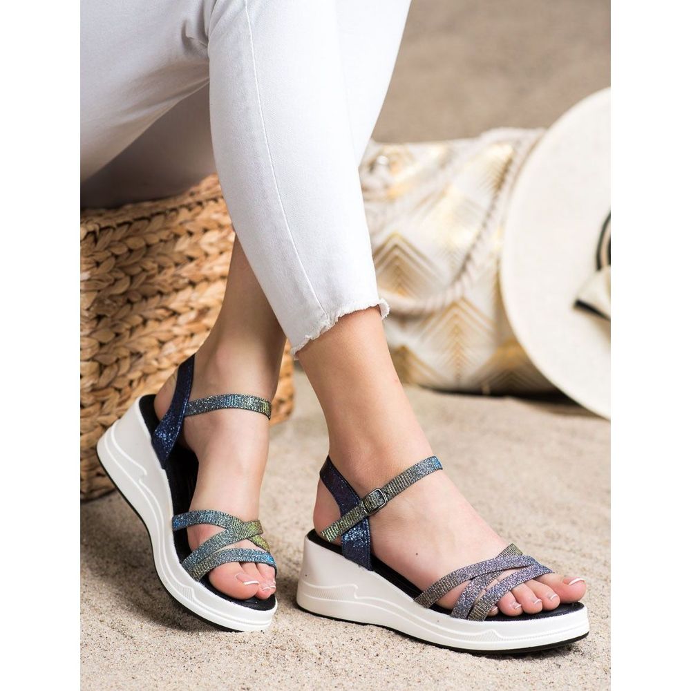 Details: Small Swan Glitzer Sandalen auf Keil navy blau grau