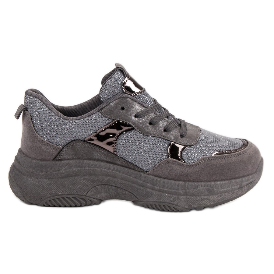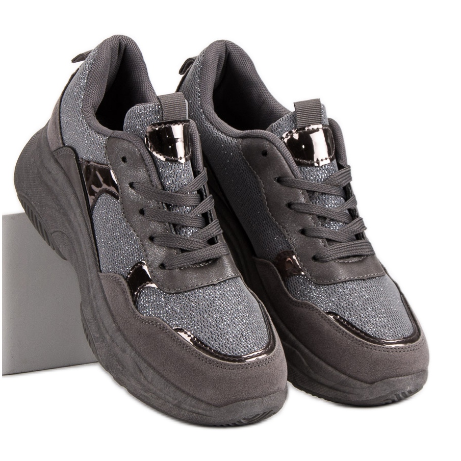 Entdecken Sie graue, glitzernde Plateau-Sneaker, die zu einem unverzichtbaren Bestandteil Ihrer Garderobe werden! Diese einzigartigen Damen-Sneaker aus ökologischem Lackleder vereinen Eleganz und Komfort. Mit einer 5-Zentimeter-Plattform, einer schlanken Form und Leichtigkeit sind sie eine ausgezeichnete Wahl sowohl für den täglichen Gebrauch als auch für Wochenendausflüge in die Berge oder entspannte Spaziergänge im Park.