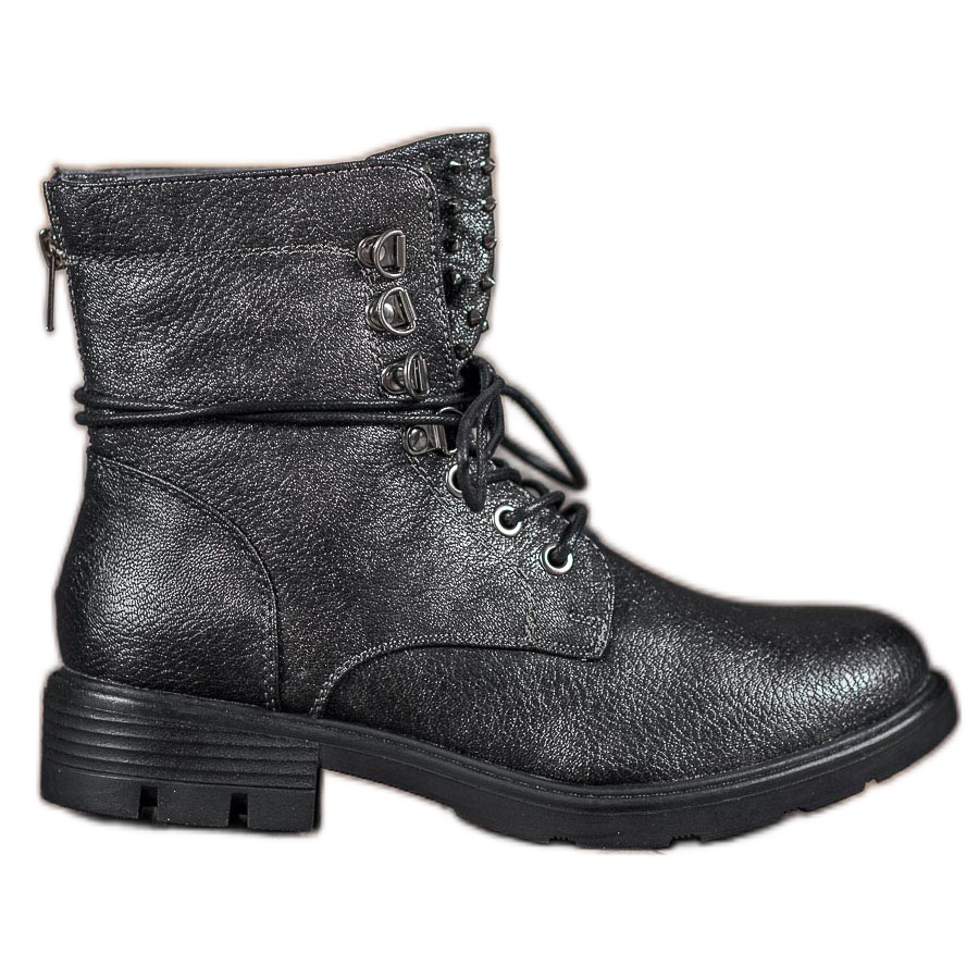 Evento Glitzer-Worker in einem dunklen Grauton sind ein ideales Angebot für Frauen, die Wert auf modisches Aussehen und Komfort legen. Diese aus ökologischem Leder gefertigten Schuhe begeistern durch ihr Glitzer-Finish, das ihnen einen einzigartigen Charakter verleiht und sie zu einer perfekten Ergänzung zu verschiedenen Stilen macht.