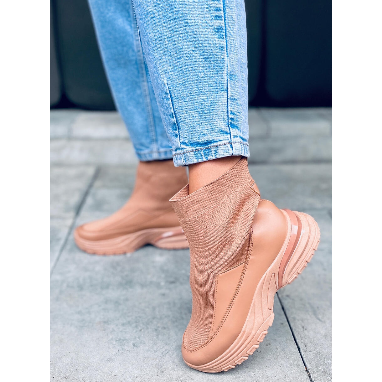 Die Socken-Sportschuhe der KeeShoes-Kollektion werden von der Marke PA1 hergestellt und sind eine Kombination aus Komfort und Trends. Das Obermaterial besteht aus einem zarten Stoff, dessen Struktur einer Socke ähnelt, den Fuß wie eine zweite Haut umhüllt und für eine perfekte Passform und ein Gefühl von Leichtigkeit sorgt. Ein zusätzlicher Vorteil ist die hohe Sohle von 5,5 cm, die jeden Schritt stabil und bequem macht.