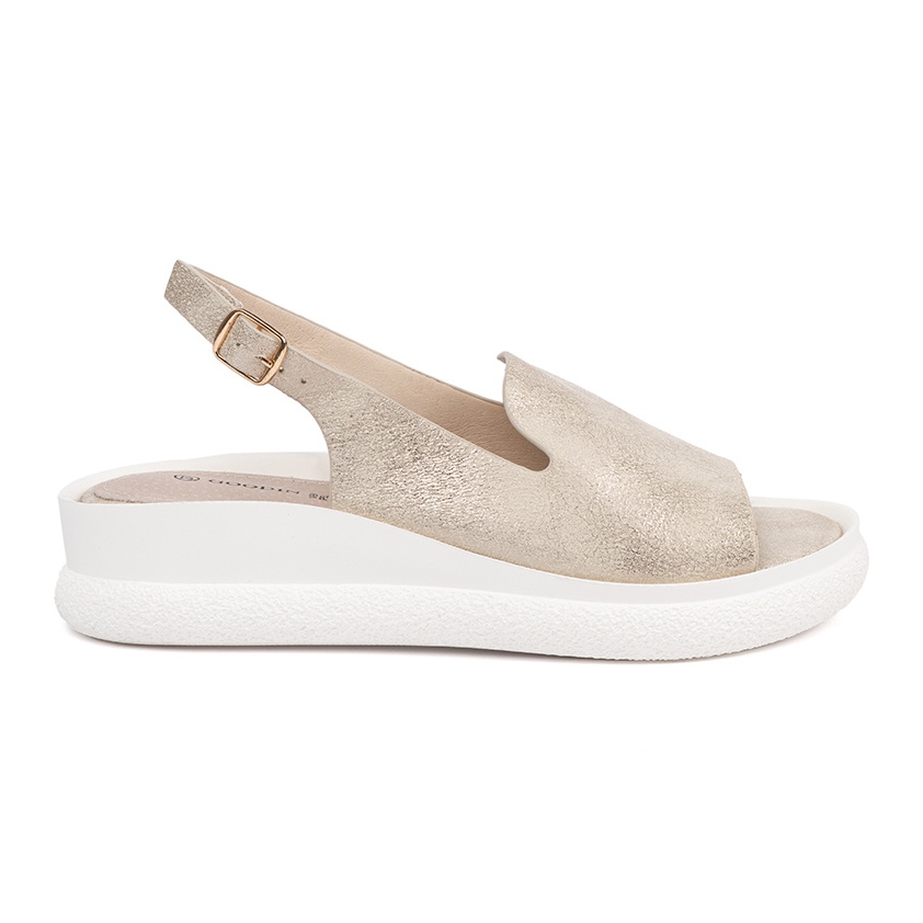 Die Fersenhöhe von 5,0 cm garantiert im täglichen Gebrauch Komfort und betont die Figur. Offene Absätze und ein Mangel an Nase sorgen für eine hervorragende Belüftung, wodurch diese Sandalen an warmen Tagen perfekt sind. Dank der Schnalle ist es nicht nur möglich, sich anzuziehen und abzunehmen, sondern auch optimale Passform zum Fuß.