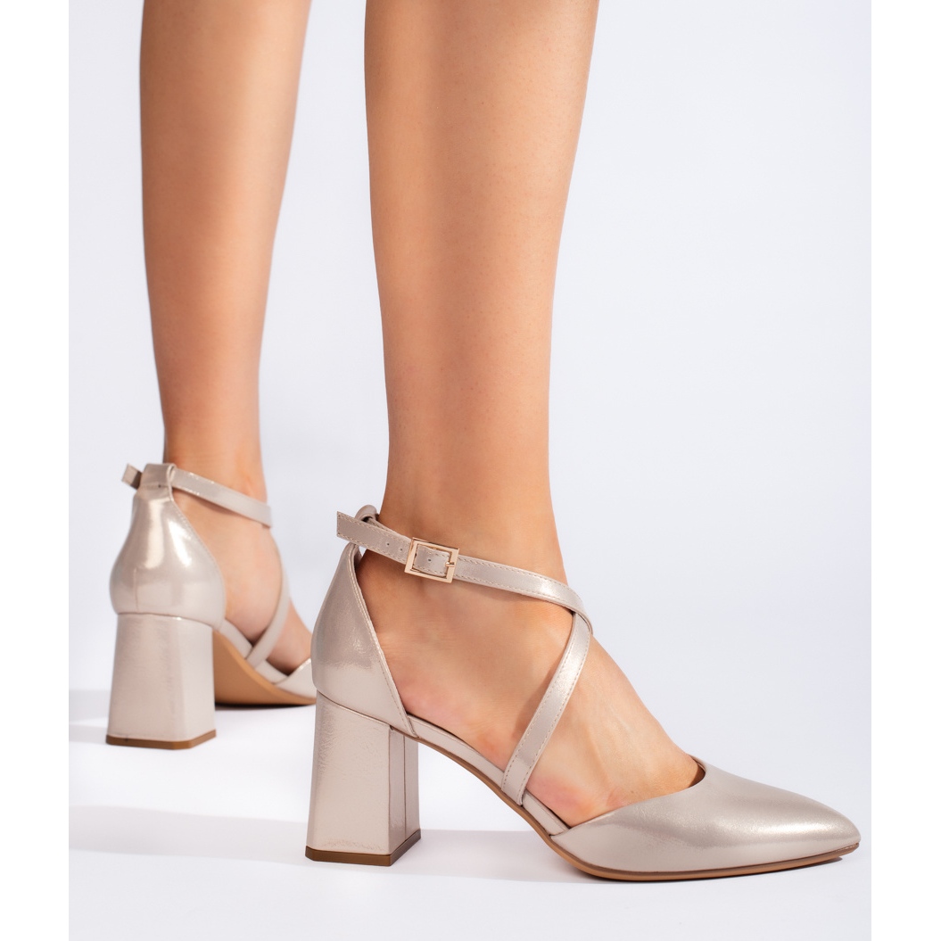 Pumpen bestehen aus ökologischem Wildleder und zeichnen sich durch eine schöne, goldene Farbe aus, die in die Augen fällt und jeder Kreation glänzen. Eine runde Nase und ein Gleitverschluss verleihen nicht nur ein stilvolles Aussehen, sondern auch Komfort des Tragens. Der Ledereinsatz kümmert sich um den Komfort der Füße, auch während langer Stunden des Tanzes oder des Spaßes.
