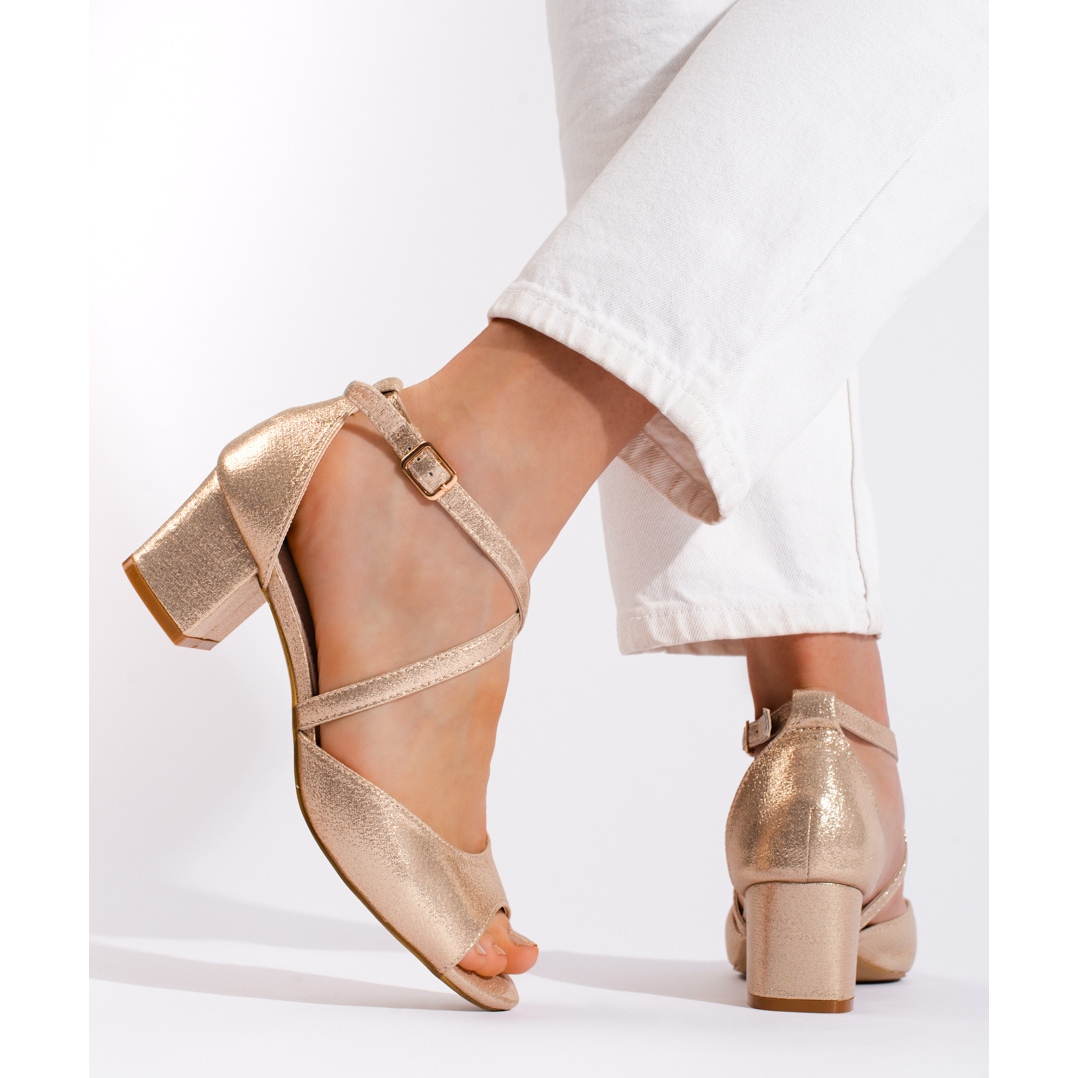 Details: Goodin Goldene Damensandalen mit niedrigem Absatz