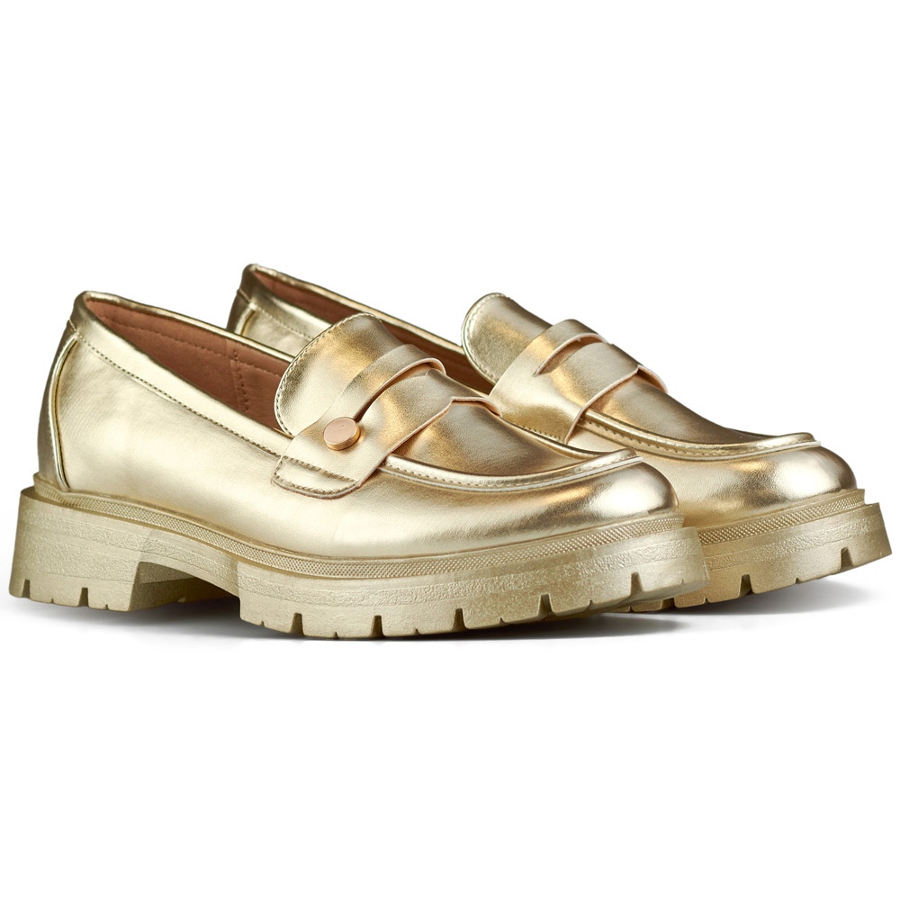 Goldene Frauenschuhe auf einer dicken Sohle sind die perfekte Wahl für Frauen, die Eleganz und Komfort schätzen. Sie bestehen aus hochwertigem Bio -Leder und kombinieren modisches Design mit praktischer Bedeutung, was sie zu einer großartigen Ergänzung zu vielen Stilen macht.