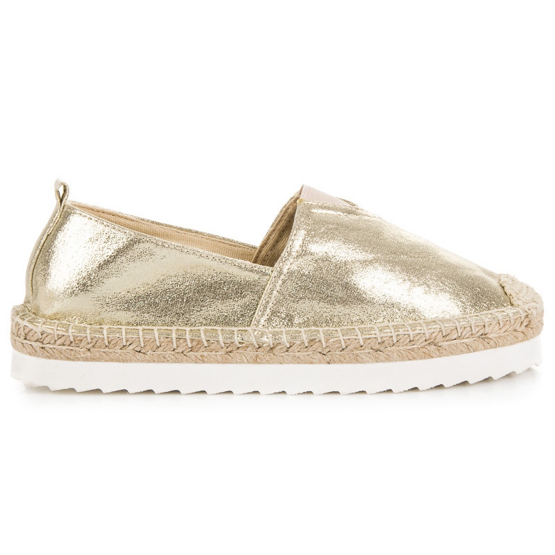Details: Goldene Espadrilles zum Hineinschlüpfen