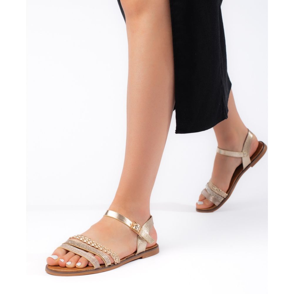 Goldene flache Damensandalen sind ein Must-Have in jeder Garderobe und können in einer Vielzahl von Stilen getragen werden – von lässig bis elegant. Dank ihnen wird sich jede Frau unabhängig vom Anlass besonders und selbstbewusst fühlen. Die Originalverpackung des Herstellers in Form einer Box macht die Sandalen auch zu einer tollen Geschenkidee. Wählen Sie goldene flache Sandalen und verleihen Sie Ihrem Alltagslook etwas Glanz!