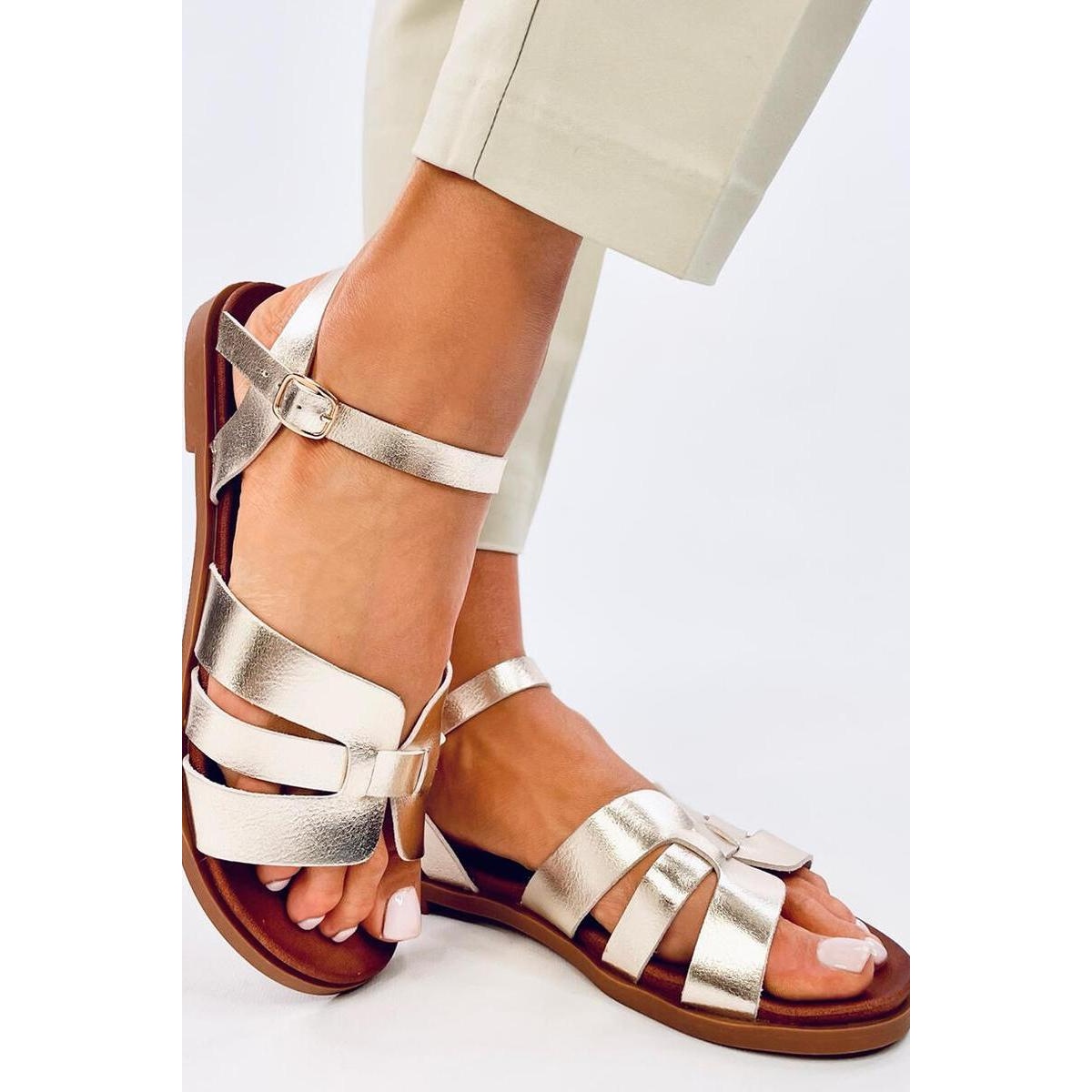 Hier ist die perfekte Wahl für Sommertage - flache Frauensandalen in einer schönen, goldenen Farbe des Herstellers in einer anderen Marke. Diese eleganten Sandalen kombinieren einen klassischen Schnitt mit einem modernen Akzent, was sie zu einer perfekten Ergänzung zu jedem Sommerstyling macht.