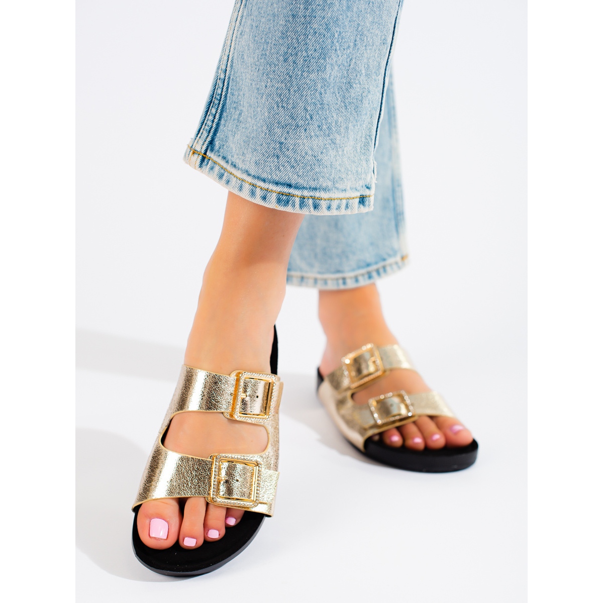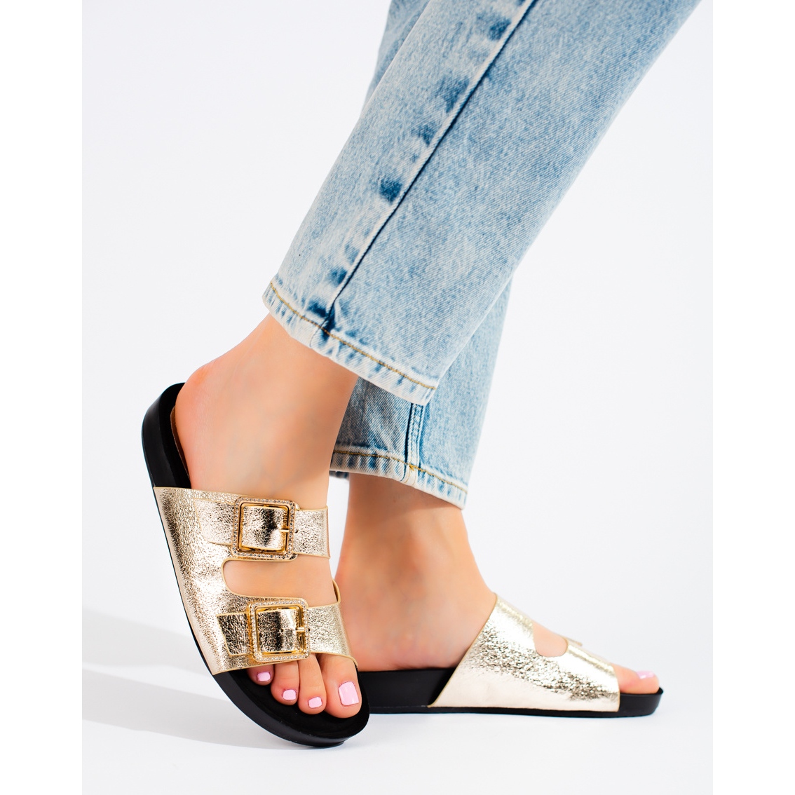 Goodin Goodin Goldene Hausschuhe mit dekorativen Schnallen