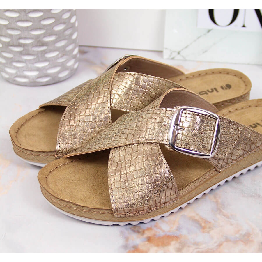 Details: Goldene Inblu-Hausschuhe für Damen mit Schnalle