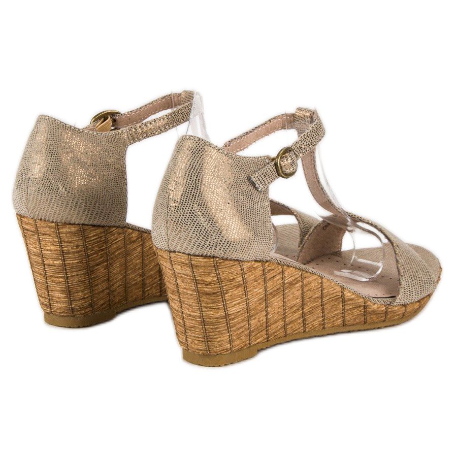 Goldene Keilsandaletten von Corina sind die perfekte Wahl für Frauen, die Eleganz mit Komfort verbinden möchten. Diese Espadrilles aus hochwertigem Stoff eignen sich sowohl für Sommerpartys als auch für alltägliche Spaziergänge. Die einzigartige goldene Farbe verleiht jedem Styling Glanz und betont die Schönheit Ihrer Beine.