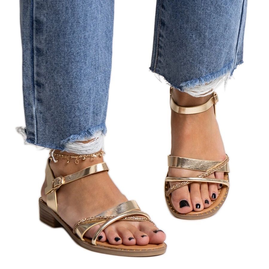 Details: Goldene Sandaletten mit Elanoria-Zirkonia