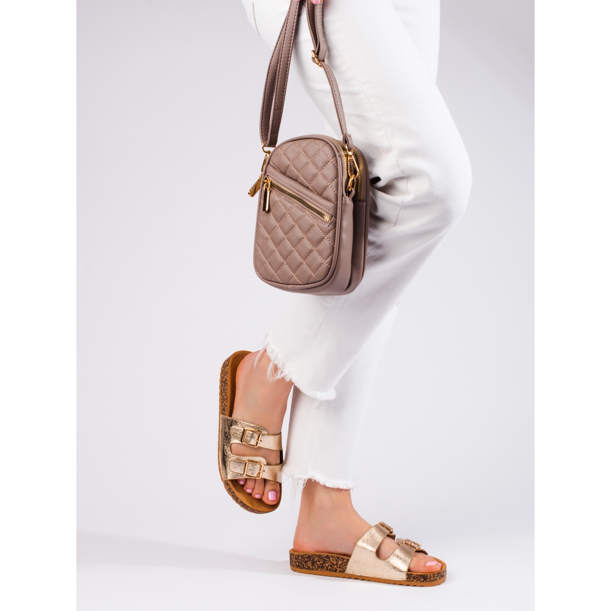 Entdecken Sie jeden Tag Eleganz und Komfort mit goldenen Damenhausschuhen mit Shelovet-Schnallen. Diese stilvollen zehenstegsandalen passen perfekt zum lässigen Charakter einer modernen Frau und kombinieren einen modischen Look mit Tragekomfort. Sie bestehen aus hochwertigem ökologischem Leder und bieten nicht nur Haltbarkeit, sondern auch zeitlosen Stil.