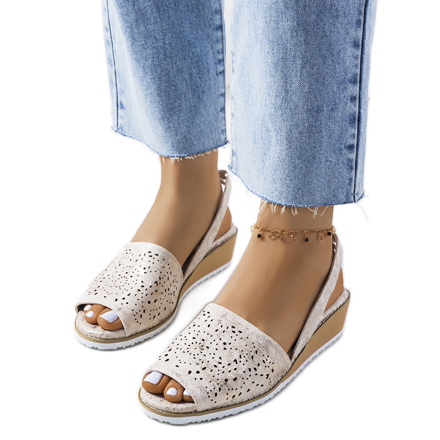 Die KeeShoes-Kollektion wird sicherlich jeden Liebhaber origineller Accessoires ansprechen und passt durch ihr minimalistisches Design zu vielen Stilrichtungen. Goldene Sheripov-Keilsandalen sind ein Muss in Ihrer Garderobe für die kommende Saison!