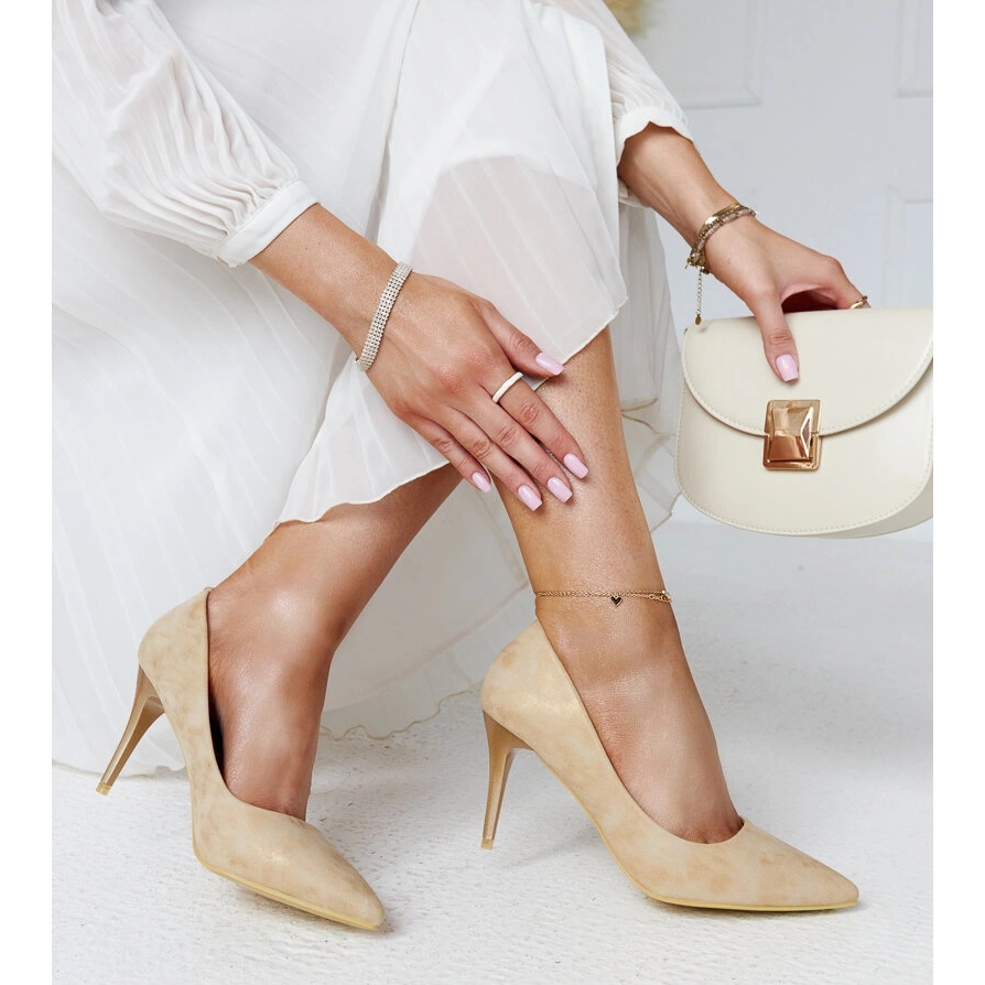 Goldene Metallic High Heels mit einem Leder -Soissons -Einsatz sind die perfekte Wahl für jede Frau, die ihrem täglichen oder abendlichen Outfit ein wenig leuchten möchte. Diese eleganten Pumpen, die aus hochwertigem Kunststoff bestehen, kombinieren Stil und Komfort des Gebrauchs dank des Ledereinsatzes.