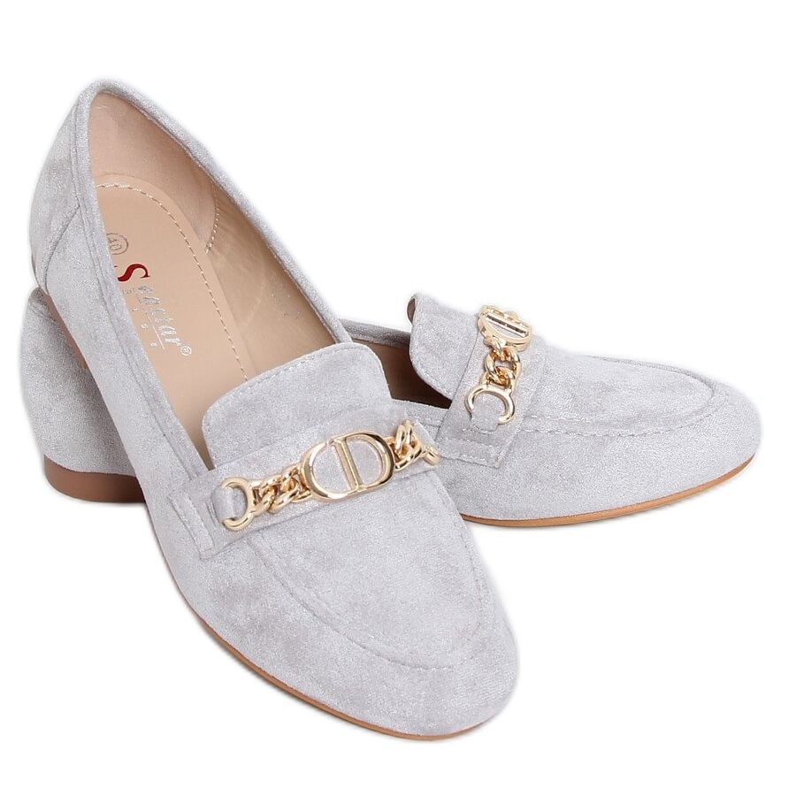 T393P Graue graue Damenmokassins sind die Quintessenz von Eleganz und Komfort, die in der Garderobe jeder Frau vorhanden sein sollten. Ihr zeitloses, anmutiges Design passt perfekt zu einer Vielzahl von Stilen, von alltäglichen bis hin zu formelleren Stilen.