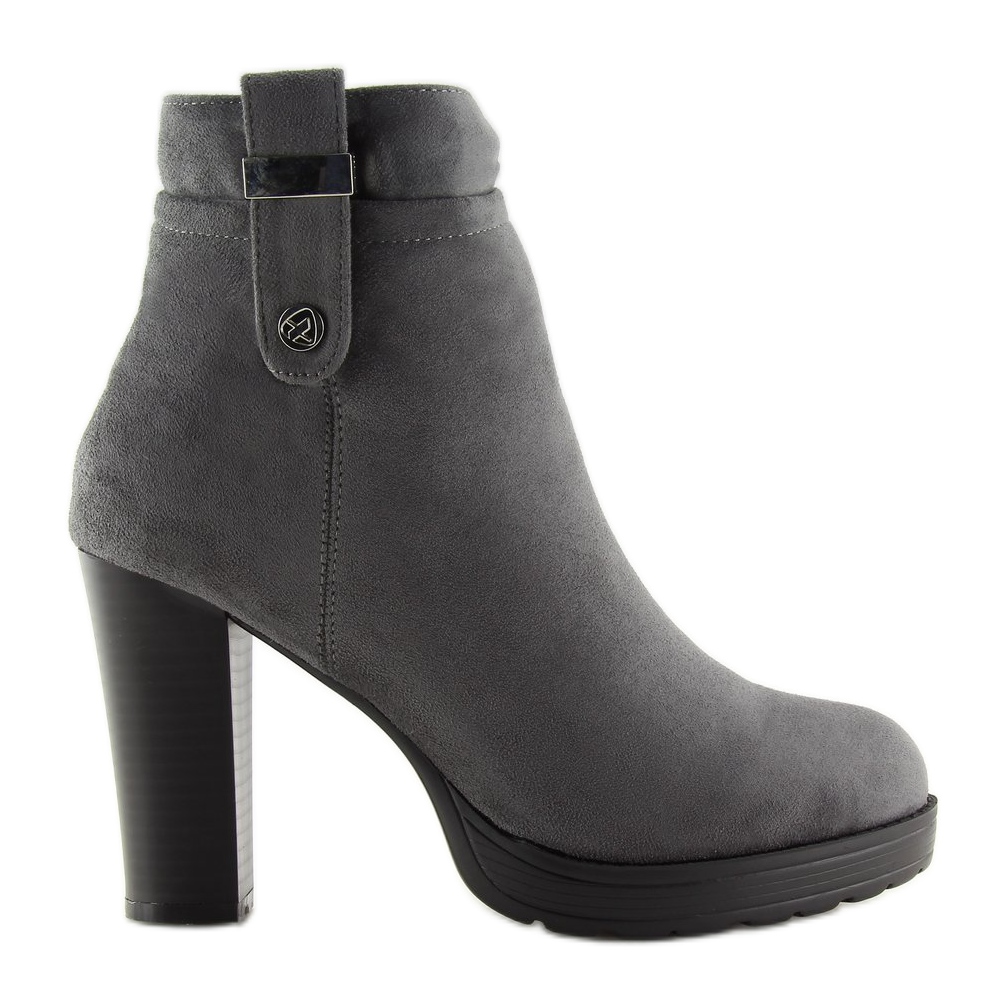 Wir präsentieren Ihnen hochhackige Stiefeletten in einem eleganten Grauton – Modell BK3233 Grey. Diese Damenstiefeletten aus ökologischem Wildleder vereinen Stil und Funktionalität und ergänzen Ihren Alltags- oder eleganten Look perfekt.