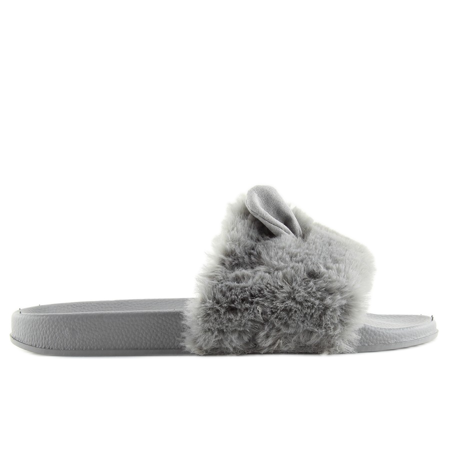 Inna marka Grau LS-02 graue Fellpantoffeln mit Ohren
