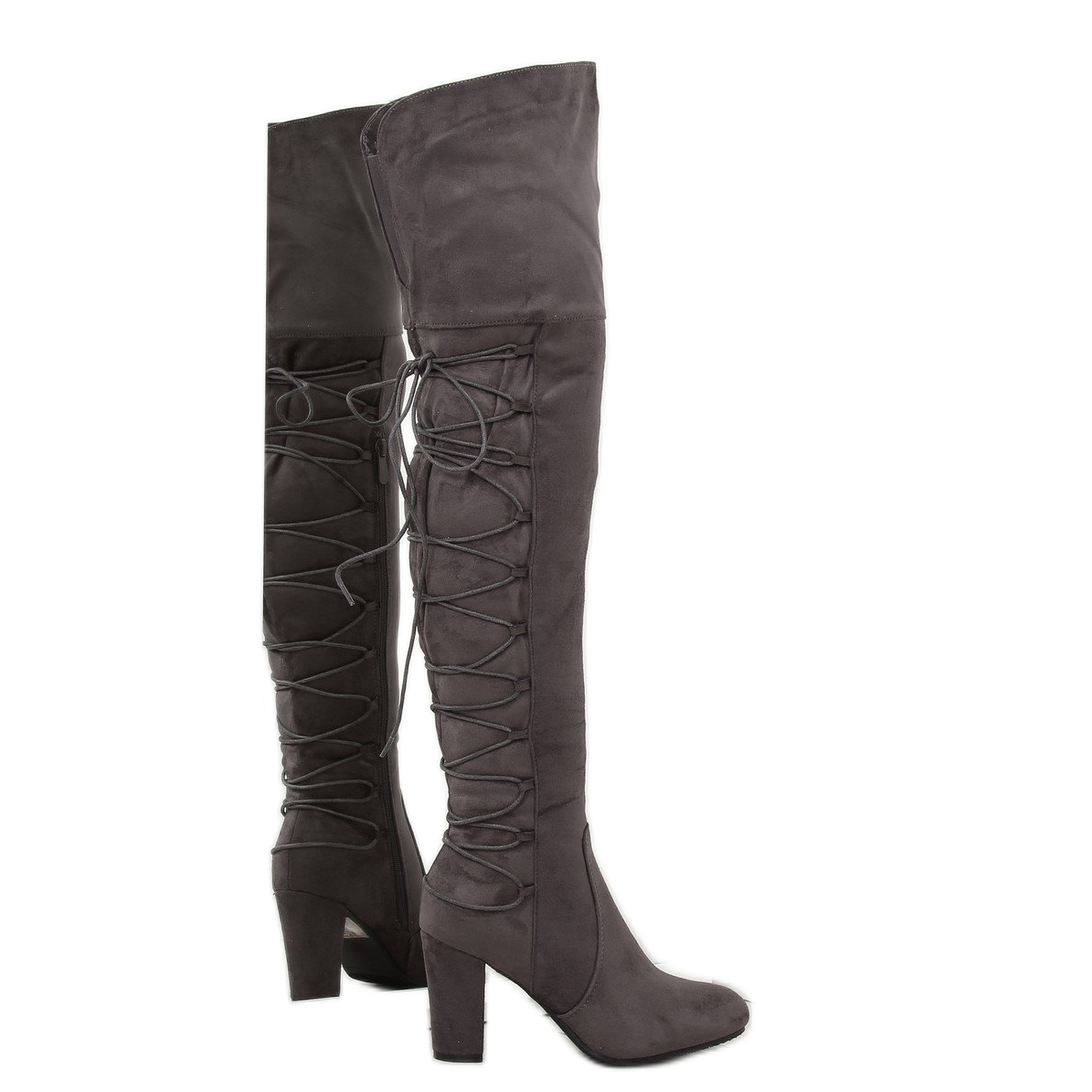 Inna marka Grau Überstiefel High Heels B34H-HB Grau