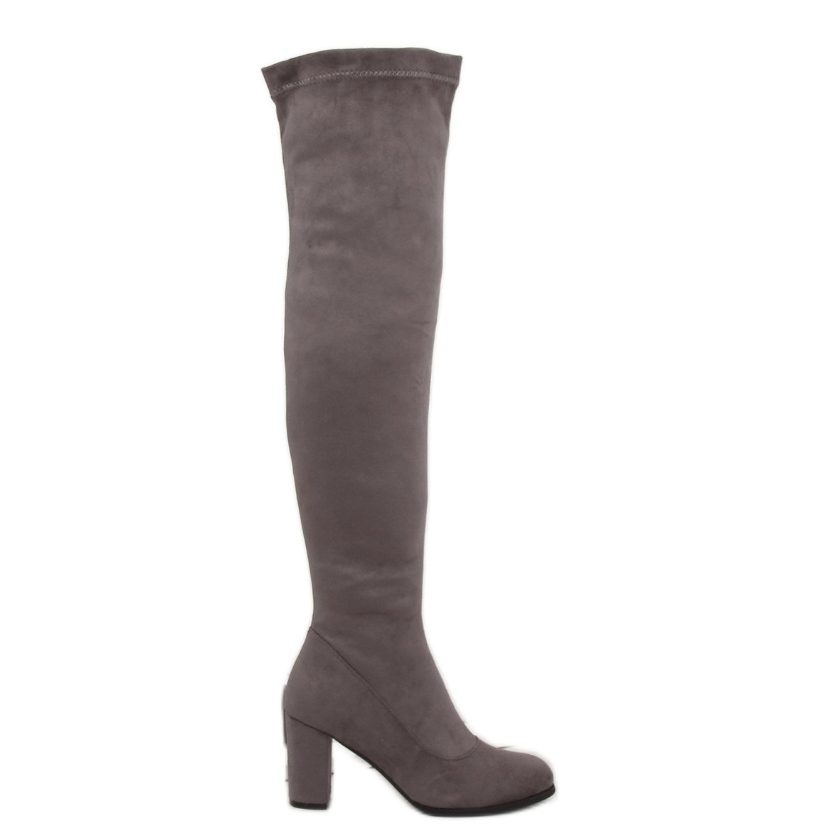 Inna marka Grau Überstiefel High Heels PE187P Grau