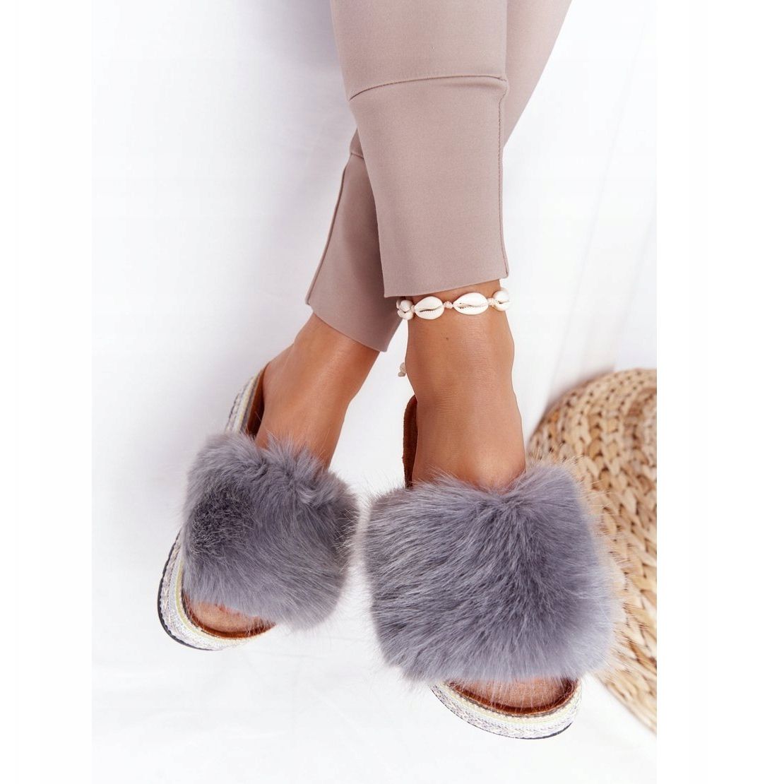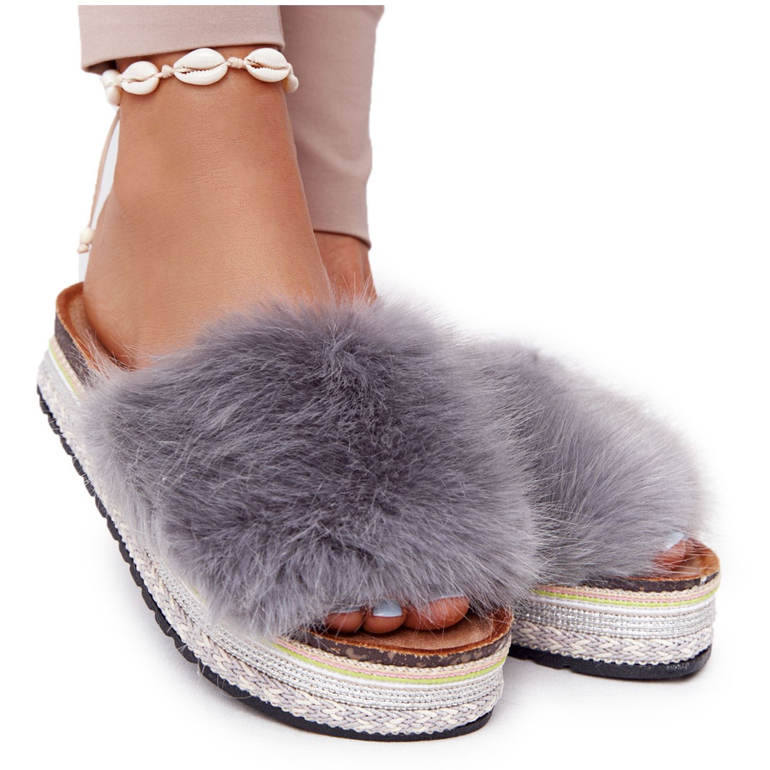 Details: PS1 Graue Abenteuer-Plateaupantoffeln mit Fell mehrfarbig