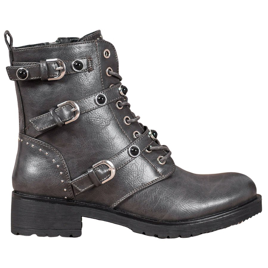 Die stilvollen Cm Paris Worker in Grau sind die perfekte Wahl für Frauen, die Komfort mit einem modischen Look verbinden möchten. Ihr bis über den Knöchel reichender Schaft, eine Kombination aus Schnürung und einem seitlichen Reißverschluss machen sie nicht nur ästhetisch, sondern auch funktional. Ziergürtel mit mit Strasssteinen verzierten Schnallen verleihen ihnen einen rockigen Charakter, der perfekt zu aktuellen Trends passt.