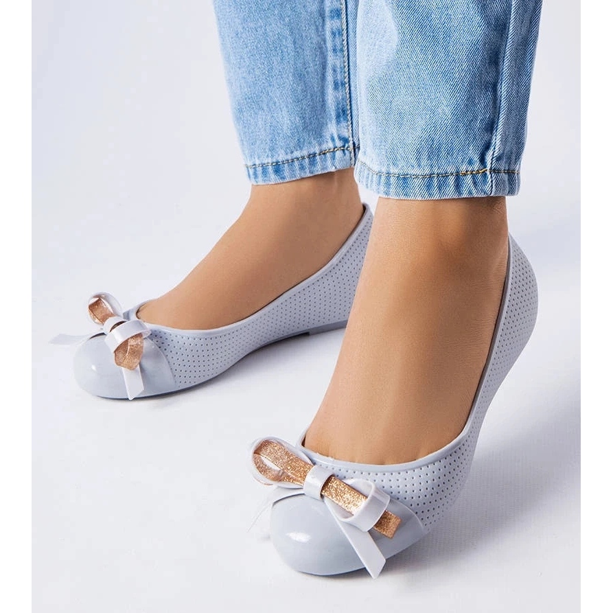 D/GMR D/GMR Graue Ballerinas, verziert mit einer Harlingen-Schleife