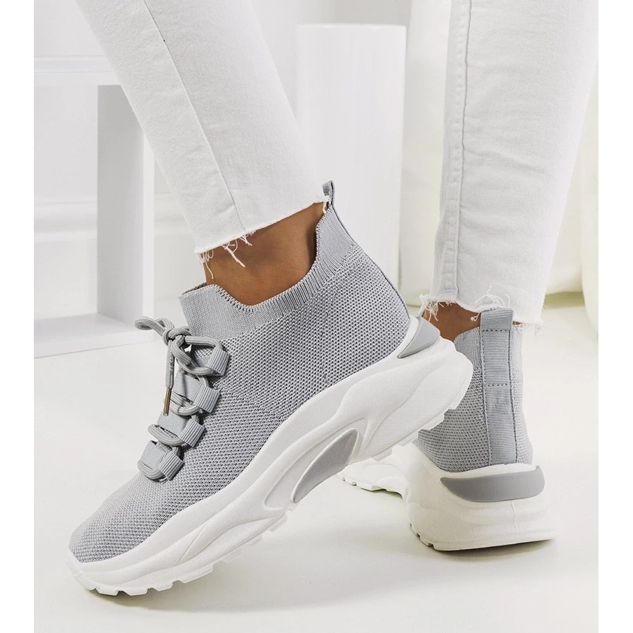 Turnschuhe haben eine runde Nase, und ihre graue Farbe macht sie äußerst vielseitig - sie mischen sich perfekt in die Alltags- und Sportstilisationen. Die hohe Gummi -Sohle gewährleistet nicht nur die Haltbarkeit, sondern auch eine angemessene Haftung an verschiedenen Oberflächen.