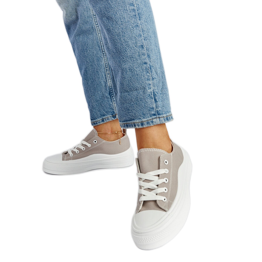 Entdecken Sie die perfekten Schuhe für Sommertage - graue Turnschuhe auf der Blais -Plattform! Diese stilvollen und modernen Turnschuhe sind eine Kombination aus Komfort und modischem Design, die sicherlich Aufmerksamkeit erregen werden. Sie bestehen aus hochwertigem Stoff und haben eine runde Nase, die ihnen einen einzigartigen Charme verleiht. Ausgestattet mit einer Spitze -UP -Verschluss garantieren sie eine perfekte Passform für jeden Fuß, was das Tragen zu einem wirklichen Vergnügen macht.