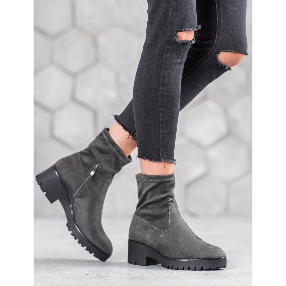 Verleihen Sie Ihrer Garderobe mit den SHELOVET-Stiefeletten in Grau ein wenig Stil und Komfort. Diese modischen und praktischen Damenschuhe sind aus hochwertigem ökologischem Wildleder gefertigt, was sie nicht nur ästhetisch, sondern auch umweltfreundlich macht. Dank der soliden Sohle mit Profil genießen Sie Komfort und Stabilität beim Gehen.