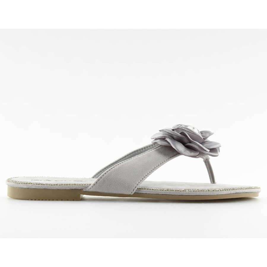 Dies sind die grauen CK31P-zehenstegsandalen – die perfekte Wahl für Frauen, die ihrer Sommergarderobe etwas Eleganz verleihen möchten. Diese auffälligen zehenstegsandalen zeichnen sich durch ihre dezente graue Farbe und einen originellen Zusatz in Form einer Blume mit Perle aus, die mit Sicherheit die Aufmerksamkeit auf sich ziehen wird. Die mit winzigen Zirkonen verzierte Sohle verleiht ihnen einen einzigartigen Charme und macht jedes Styling einzigartig.